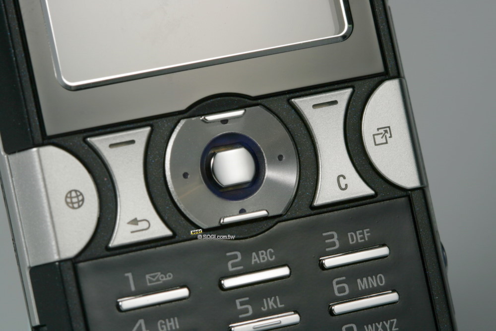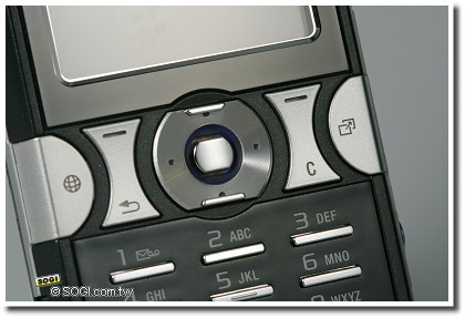 五向功能鍵與周圍的選項鍵,也具備了「金屬」要件,刻劃出手機的冷冽感。而最左側和最右側,也納入了 Sony Ericsson 一貫的快捷按鍵,左邊是上網快速鍵,右邊則是捷徑按鈕。