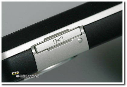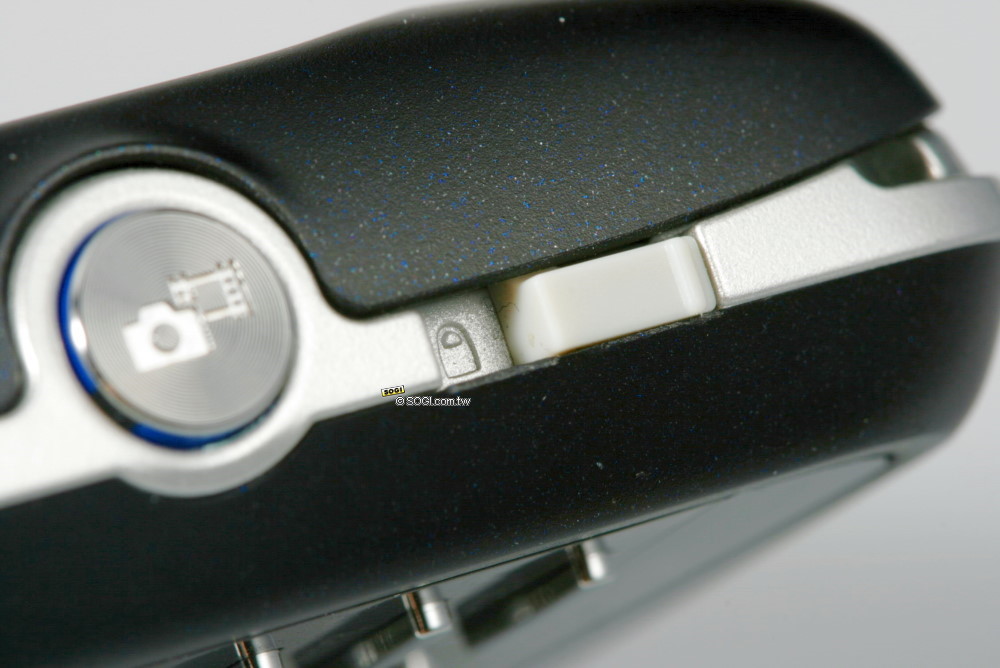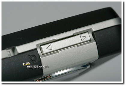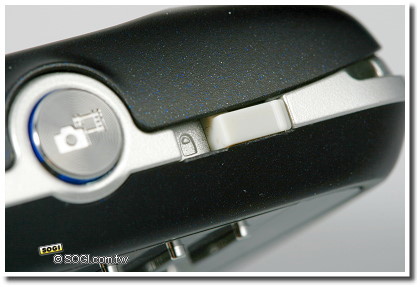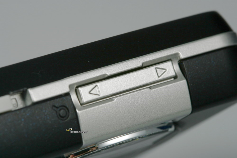 另外,在右側也同樣有支援快捷功能的按鈕,包括有音量調整鍵和拍照快捷鍵。當使用者在聽 MP3 或通話時,可透過音量鍵來調整聲音大小;而長按拍照快捷鍵能夠立即開啟拍照功能,進入拍照介面後可當作快門鍵使用,且圓形的按鈕,增加操作範圍,可以避免拍攝失誤。