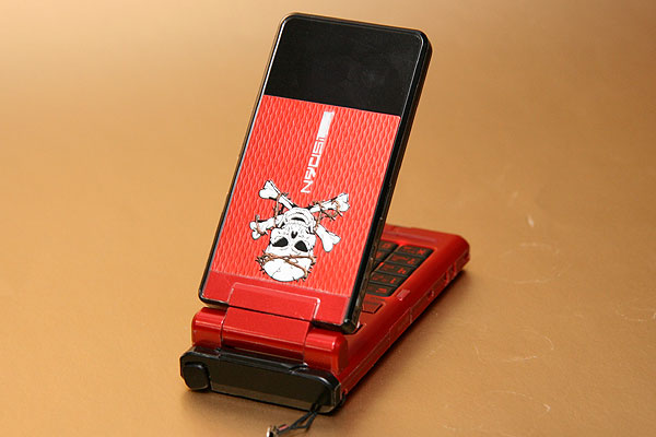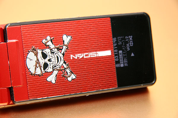 買回家的第一件事情,就是東西丟著直奔附近的手機包膜店,把珍貴取得不易的 N905i 給包起來,而且貼上非常龐克風的骷摟頭。N905i 加上貼片逼近 18000 元的售價,真的是把好不容易存到的錢都給敗掉了,敗家真的是永無止境。而目前的貼片解鎖還算是穩定,設定為 2G 模式可打可以接,設定為 3G 模式可以打不能接、視訊電話也是可以打不能接,所以建議設定在 2G 模式。雖然有時候從電梯出來收訊會 OUT,但是經過搜尋或是重開機,一般收訊就會回來。
