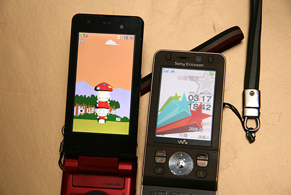 和我另外一支手機 W910i 只有 2.4 吋的螢幕比較,W910i 在國內的手機螢幕並不算小,但和真正日系手機一比較,就真的是小巫見大巫了。