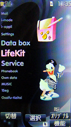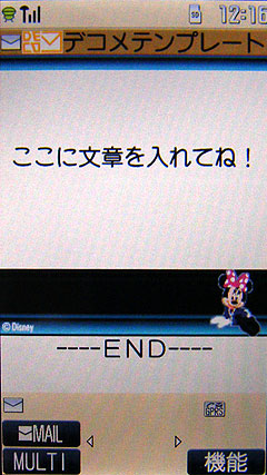 由於 NEC 和 Disney 有長期合作,所以 NEC 的手機當中一般都會有迪士尼的介面和模式。連收發簡訊也是,DoCoMo 的裝飾郵件當中,就有內建迪士尼的背景,可以把米奇或米尼的裝飾郵件,搭配可愛到爆的繪文字,來發出圖文並茂的動畫郵件。
