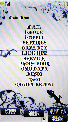 905i 系列裡頭都有內建 DoCoMo DAKE 的介面,也就是多可摩香菇,它可是 DoCoMo 的人氣代言卡通人物呢!而且 N905i 內建超多組的選單介面,讓人怎麼玩都不會膩。