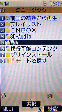 音樂的部份可就有點麻煩了,日本人非常重視著作財產權,所以沒有辦法向台灣人這樣隨便自己灌音樂到記憶卡裡,然後手機就可以播放音樂。N905i 和大部分的 905i 手機一樣,支援 WMA 和透過 SD-Jukebox 來傳送的音樂,如果是 AAC 格式的話一定要在日本透過手機上網下載。我透過 Windows Media Player 接上傳輸線,把 PC 裡面的音樂進行傳輸時,無論是什麼格式都會被自動轉換成 WMA 檔到手機中。