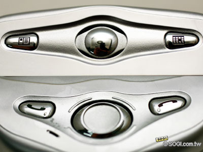 DOPOD 699 的按鍵設計,螢幕上方中間為聽筒,左邊則是聯絡人的按鈕,右邊是行事曆,這都是商務人士必用功能。螢幕下方則是四方向鍵以及電話功能的接聽及結束鍵。