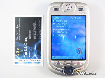 大體積的 Dopod 700 由上圖可以知道,與一般的名片相比,它的確是比較龐大些,相對的,螢幕也是非常的大,想要大螢幕的表現來處理工作上的瑣事,這點是不可以被忽略的。