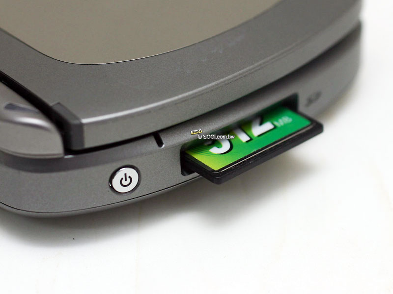 Dopod 900 的花樣很多,剛介紹一排,現在旁邊又有一堆了,如上圖所示,這裡就有一堆實用的介面或按鍵,都可以顧名思義就不多說了,比較要提的是不起眼的麥克風,設計在這裡除了可以讓使用者「不開蓋接聽電話」外,在開蓋後折疊起來通話的下巴位置也是在這裡,設計得真剛好。