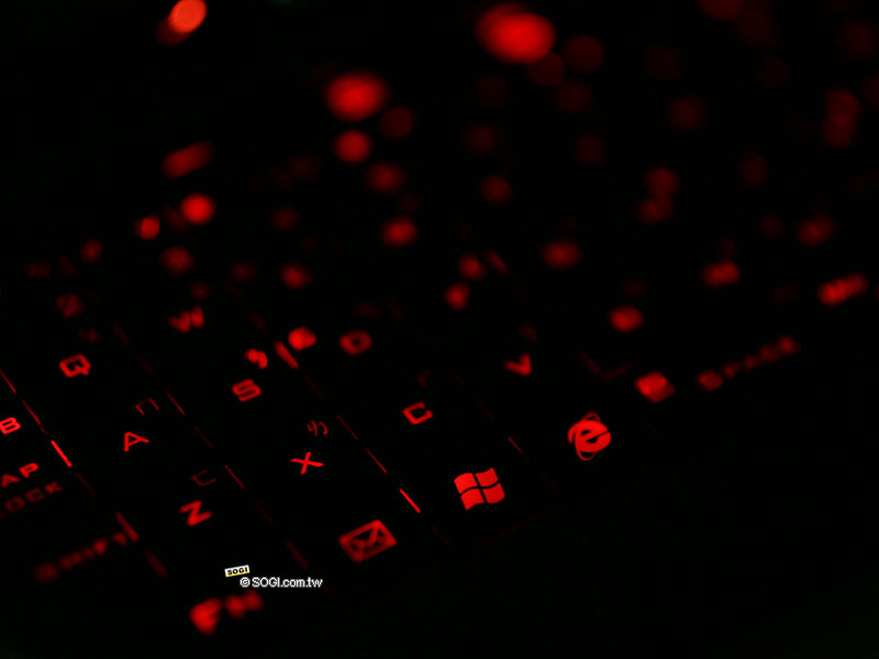 筆者認為它的鍵盤燈真是見過最美的一個,有很亮的有偏粉紅的英文鍵,有很紅的注音提示,配色真是美,呵…也許只是個人的看法而已,不過整體設計真的不錯,而且都很醒目。