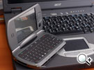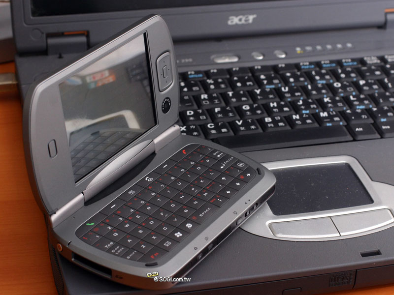 而橫開式的 Dopod 900,打開就像是一台 NB 在眼前,所以原廠號稱它是世界最小的「筆電」(大陸用法? 就是筆記型電腦啦!!),這個口號是滿響亮的,但筆者還是覺得只算是初期產品罷了,真的要成為 NB 的替代品,應該還有一大段路要走。不過 NB 的大多數功能它都有了,不過 Dopod 900 什麼都是迷你就是了,但應用的程式還是沒有真實的 NB 來得實用及方便,雖然 NB 大了很多,所以它真正比 NB 有的優勢就是體積還有…可以講電話,沒錯…還有視訊電話(不要拿電腦裡的 SKYPE 來吐槽我哦!)。