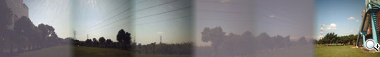 下圖就是「全景」模式的拍攝結果,拍攝當天炎陽高照,只要換個角度就會影響到鏡頭的感光能力,但似乎是影響太深遠了,且在陽光之下螢幕還是沒辦法很清楚的顯示,所以要對準剛剛的景物實在有些困難,這是現在手機的通病。