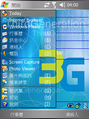 而 Dopod 900 的桌面控制項內建有三個,如上圖有電源管理、無線管理以及螢幕旋轉等,其中無線管理就是可以快速的開啟或是關閉「電話、藍芽、wifi網路」三種無線的功能,如下圖中所示。而當然開始功能表的樣子還是一樣,沒什麼變化就是了。