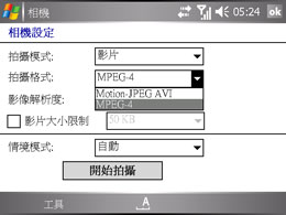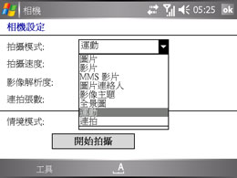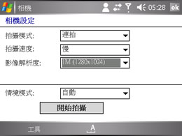 我們先來看相機的各種設定。Dopod 900 內建了 130 萬畫素的相機,但可以直接模擬至 200 萬畫素,只要選擇設定中的「影像解析度」便可以選取 2M 的解析度。