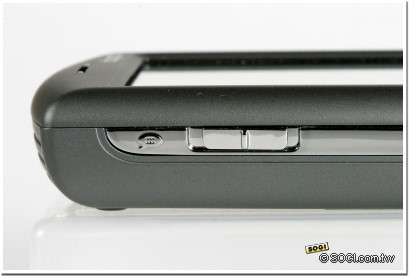 由於主要操控功能都被設計在機身正面, P800W 的左右兩側設計就相當簡單,左側部份按鍵則集中在上方,分別為聲控/語音記事快捷鍵及音量調整鍵,其中 P800W 的智慧型聲控不用預錄聲紋,就能直接進行電話撥打或是開啟程式的動作,可說相當智慧。