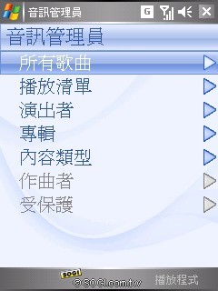 音樂播放部份,除了可以透過作業系統內建的 Windows Media Player 播放,為了方便使用者管理手機中的音樂資訊,P800W 也內建了音訊管理員程式,可將 MP3 及 WMA 格式歌曲以專輯、演出者、類型等分類方式予以管理,同時可以將播放的音樂設成來電鈴聲,免去一步步的手機設定。