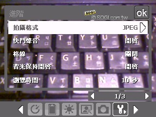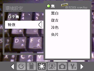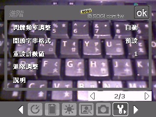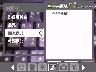 P800W 的相機拍攝介面,延續 Dopod 一貫的橫式類相機操作介面,和前面所介紹的 GPS Photo 模式也相同,都可以自行調整相機的畫素大小、白平衡、特效及測光模式等細節,因應所拍攝的景物,做出最佳化的設定。當然相機的 200 萬畫素,除了可以支援最大 1600×1200 解析度的相片輸出,也可以當做隨身 DV 使用,拍攝不限時數的有聲動態影片。