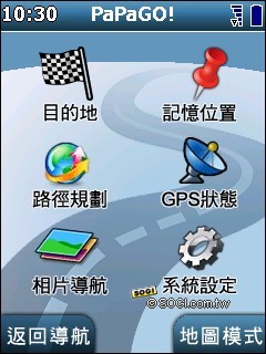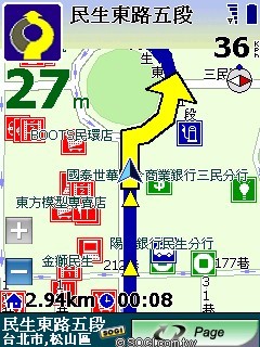 Dopod P800W 導航軟體採用研勤科技研發的 PaPaGo! R12 版本,除了承襲以往 G10 版本的穩定度外, R12 在顯示及操作上也都有所精進。 R12 最主要的改進,在於以車用 GPS 為開發依據,減少了操作時的點選次數,能更直覺地操作使用;同時,軟體的圖示圖案也重新設計,讓 R12 與 G10 版本有著顯著的不同。