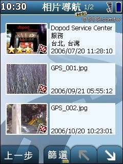 前面提到相片具備經緯度資訊,因此可以直接導航到相片的位置,而且我們還可以直接上傳至 NaviGuide 景點分享網路平台,這個平台是由 Dopod 所開發,在 12 月時會正式上線,透過分享照片以及旅遊心得的方式,不但可以分享自己的旅遊成果,而且在網站上面看得到的照片,我們就一定能夠到達那個地點,是非常先進且獨創的設計概念,而 Dopod P800W 就是這個概念的首創機種。