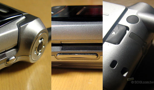 而 Free Talk V6200 的周邊設甫,左側有個小鍵,就是拍照鍵或是啟動外螢幕自拍的快速鍵;而右側則是多數手機的共通設計 - 音量鍵;在機身的背後則是耳機孔及吊飾孔的設計,基本上外型的介面都不會太複雜!