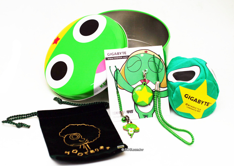 上面兩張看到的圖片是 GIGABYTE 藍星侵略機隨機附贈的贈品,包括有「手機套」、「吊飾」、「手機座」、「大頭特寫置物盒」、「宇宙青蛙迷彩綠掛繩」等等精緻周邊商品,看的小編心花怒放!不僅如此,GIGABYTE 藍星侵略機最讓人感到超值的是 1:1 軍曹公仔,全長有 55.5 公分喔!因為「數量有限,贈完為止」,公仔不是買手機就一定有的,所以要收藏的朋友行動要快喔!