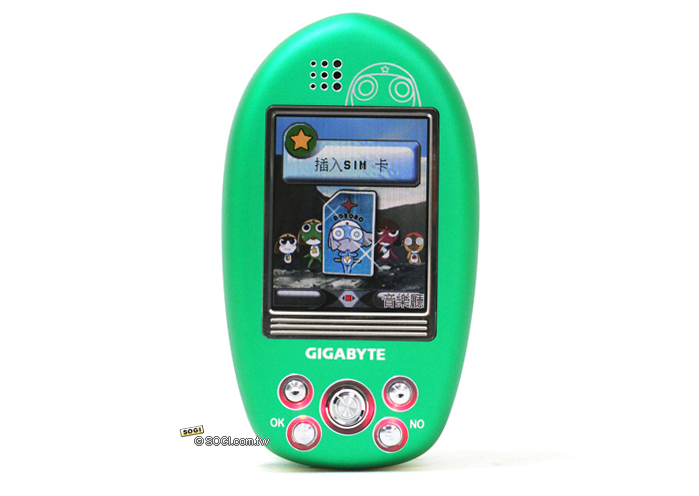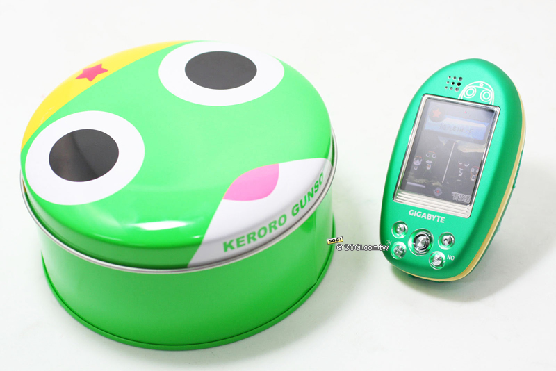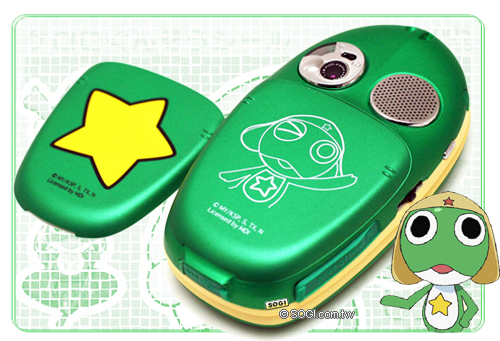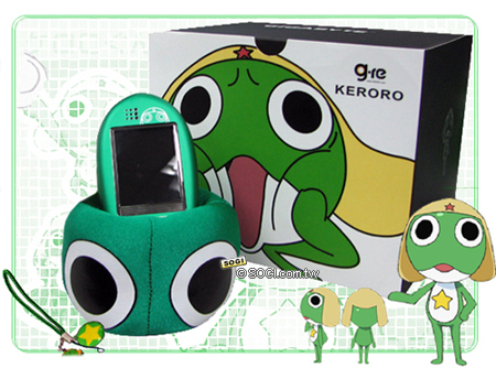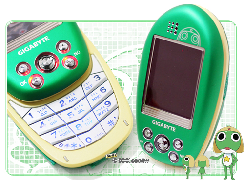 看到全身綠油油一片的可愛軍曹了嗎?這就是在動漫界引起一陣風潮的日本卡通 KERORO 軍曹,自推出後可說是風行全省、不論小孩、大人都喜歡!你還沒有看過軍曹嗎?那真的就落伍囉!國產品牌 GIGABYTE 就是看準了軍曹的驚人魅力,推出了廣受喜愛的「藍星侵略專用手機」!