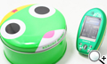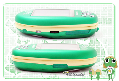 「藍星侵略專用手機」是專替軍曹迷所量身設計,外型延續原版 g-re ,但是配色與圖案都是重新設計過的,正面螢幕的上方就露出 KERORO 半顆頭,兩個圓滾滾的眼睛真是令愛不釋手!