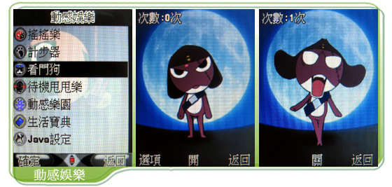 此外,在其他功能部分,還有隊長專用行事曆、「伍長幫你擋」來電警衛、「軍曹陪你跑」計步器、「曹長精明」計算機、「兵長用碼表」、「摩亞與叔叔關心你」健康資訊站、「累了就熄燈」關機動畫,以及曹長作戰演練專用「螢幕入侵大作戰」及「藍星侵略保衛戰」等 2 款 JAVA 遊戲。