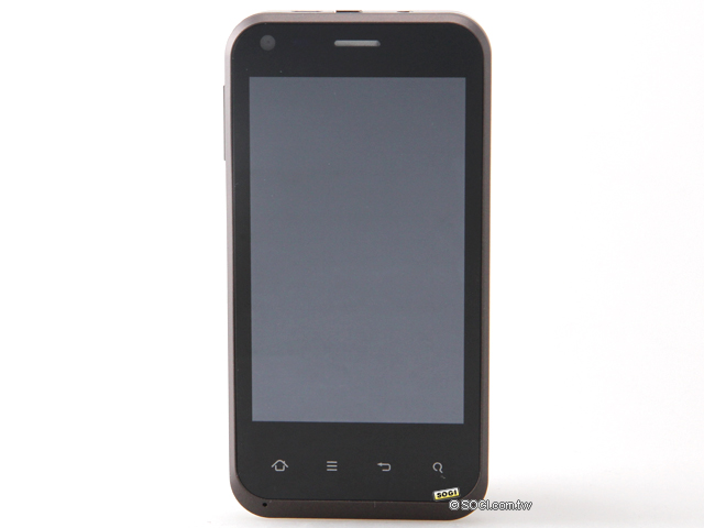 ▲G-PLUS M600 螢幕下方設有觸碰感應式「首頁」、「選單」、「返回」與「搜尋」Android 作業系統基本功能鍵,左下角的孔洞為麥克風收音孔。