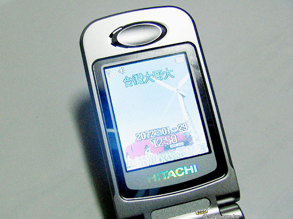如上圖,HITACHI HTG-908 的沖電器插孔與 USB 傳輸孔皆位於機身正下方,當使用者插上隨機附贈的 USB 傳輸線時,手機螢幕畫面馬上變成隨身硬碟的畫面顯示,手機搖身成為隨身碟的應用概念,目前亦已成為許多手機廠商的設計概念了。