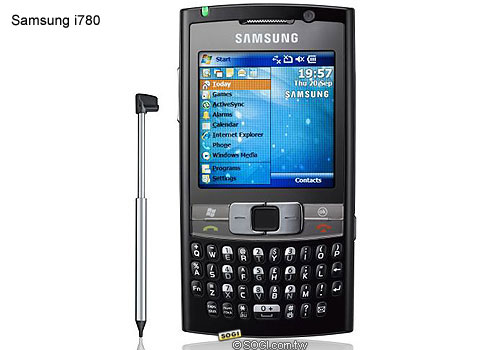打著超薄旗幟的 Samsung i780,厚度只有 13.3 mm,若不是看到標準的 QWERTY 鍵盤,實在很難想像 i780 是走智慧路線。採用 Windows Mobile 6.0 Standard Edition 作業系統、Intel XScale PXA270 520 MHz 處理器,i780 比前一代的 i608 更多了 2.5 吋 320×320 pixels、65536 色的觸控螢幕。