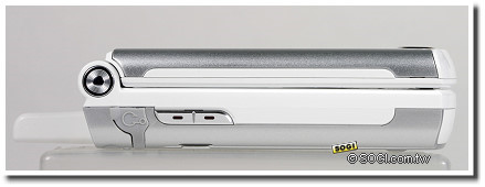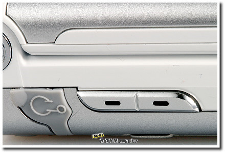 機身側附有miniSD 卡插槽,方便擴充記憶體。上方則有拍照鍵,不過無法支援闔蓋時使用,必須開蓋才能拍照;但在闔蓋狀態時,只要長按拍照鍵,就可以直接進入錄音功能喔!