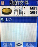 Hitachi HTG-103 內建了 MP3 播放器,可以當作 MP3 隨身聽,以 60MB 的容量來講,大概可以放進一張專輯的歌,如果可以擴充就更完美了。HTG-103 有三種風格的撥放面版,使用者可以根據自己的喜好來設定。小編還發現,HTG-103 在合蓋的狀態下,只要長按手機左側的快捷鍵,就能透過外螢幕直接播放 MP3 音樂。