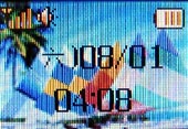 Hitachi HTG-103 是一款迷你的百萬畫素照相手機,螢幕自然也不會向其他日系手機一樣較大,Hitachi HTG-103 採用 26 萬色 、1.8 吋 、解析度 128 x 160 pixels 的 TFT 螢幕,和很多韓系和國產手機一樣。小編發現其螢幕的亮度還頗高的,色彩飽和鮮豔,而且還有全螢幕待機圖。