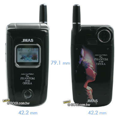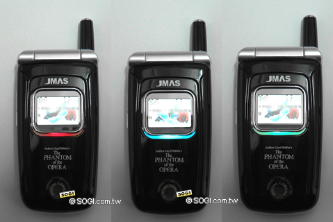 撼動人心的歌劇魅影手機由 JMAS M800獨家代理。有看過這部電影或歌劇的朋友,一定都對其故事情節以及電影的拍攝手法所塑造出的美麗,讚嘆不已。而這款歌劇魅影專屬手機不僅製作細緻,更採用質感相當好的鋼琴烤漆,只消一眼,就令人精神振奮...歌劇魅影版手機一推出,的確獲得不少粉絲的注意,尤其是黝黑的亮麗外型,在在都充滿了歌劇魅影的詭譎。不過卻缺少了可傳送多媒體訊息的MMS功能,讓許多玩家與粉絲們大失所望,若有MMS不知該有多好呢!不過據了解在普通版M800就有MMS的功能囉!不過滿滿的電影片段桌布與開機動畫,還是相當吸引人的,且M800歌劇魅影版的照相效果由螢幕顯示,算相當不錯了。