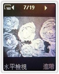 這些特效都是 Sony Ericsson 產品中的常客,黑白、負片、深褐色、過度曝光等4 種特效,相信大家應該都不感到陌生,下方圖片第 1 張為正常無特效的照片。由於 K310i 只內建 30 萬畫素,所以即使選擇加大的(利用補插點技術,相機模擬至百萬畫素)圖片尺寸,實際的影響效果仍舊有限。從照片結果來看,相機有做到各種特效的不同感覺和差異性,但螢幕表現的畫質普通。