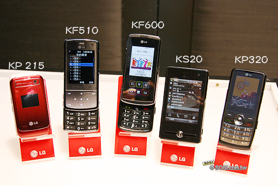 LG 現場展示五款新機,除了 KS20 曾於去年 ( 2007 年 11 月 ) 在中國澳門展示過之外,其餘四款新手機都是第一次面對台灣媒體。LG KS20 目前已上市,建議售價 19,800 元,LG KF600 預計在 3 月中左右上市,建議售價 11,900 元,且在上市的這段期間將邀請以溫暖簡單畫風風靡台灣的插畫代表人物凱西 . 陳,與藝術家進行一連串的 LG KF 系列手機之相關街頭及網路活動。而 LG KF510、KP320 與 KP215 也將於三月底前陸續上市。