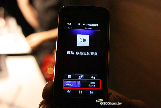 MP3 音樂播放也是透過子螢幕操作,紅框處可透過指尖的觸碰而達到音樂快轉