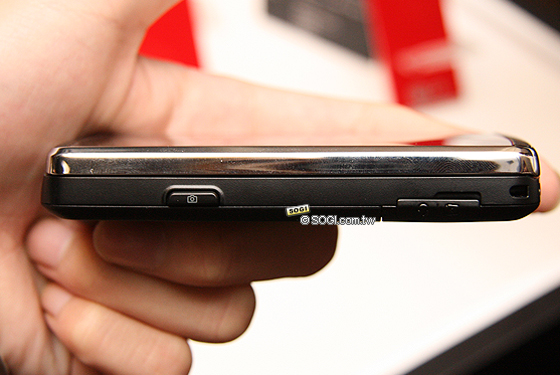 上圖是 LG KF600 左右兩側的快捷鍵設計,雖然它以感應式互動觸控功能取勝,不過齊全的快捷鍵設計更加深了用戶在使用上的便利性。