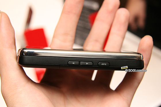 除此之外,LG KF510 還具備 10.9 mm 薄型機身設計,雖然擁有薄型機身,但側邊方面卻也不捨棄設計一些常用之專屬快捷鍵。