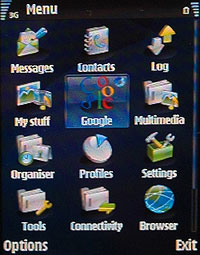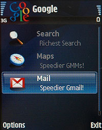 上圖是 LG KS10 的主要功能介面圖,比較特別的是,在主功能介面上,KS10 內建 Google 相關介面,使用者可直接透過 Google 進行搜尋與收發電子郵件等網際網路功能。