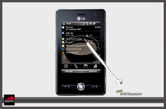 超薄 LG KS20 智慧型手機則提供使用者最先進的行動上網裝置,擁有完整的網頁瀏覽、各類音樂及影像檔案下載、push 電子郵件等強大功能,連線速度透過 HSDPA 最高可達 3.6 Mbps,如搭配手機雙相機鏡頭,更可實現如視訊會議等進階網路應用。LG KS20 極簡設計概念將吸引重視外型設計與行動功能的商務人士,搭載大型液晶觸控螢幕,讓上網瀏覽更是如虎添翼。LG KS20 採用微軟 Windows MobileR 6.0 作業系統。