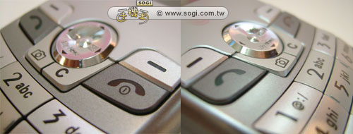 除此之外,深究 LG L3100 的按鍵,為波浪型設計,整體四牌按鍵幻化為兩排拱狀造型,四方鍵的下方也多出兩個按鍵,右測是取消鍵,左側為相機快捷鍵。