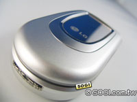 剛拿到LG C1100馬上被它的時尚外表所屈服,整隻手機大小剛好一手掌握, 感覺很輕薄小巧,是一款非常適合女性消費者使用的手機。在C1100的正面,可以發現跟目前其他手機不太一樣的地方是C1100正面有一片粉盒狀的小鏡子,這片小鏡子可以充當女性使用者臨時補妝之用。