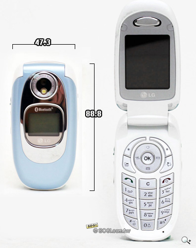 傳統貝殼機的外型是看到 LG C3380 的第一眼印象,小巧迷你的體積、只有 91 g的重量,以及淡藍色的機殼頗有春天的氣息,不僅適合當下的季節氣氛;更是易於攜帶,不論手拿或是放於口袋、袋子裡都適合。