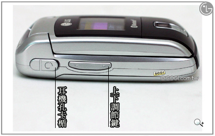 LG G233 的側邊如同它外型一般簡約,右側為相機快捷、左側則是耳機孔、及調節按鍵。另外,G233 的機身沒有看到記憶卡插槽,而內建只有 4MB 儲存空間,身為商務訴求的手機來說,稍稍弱了一些。