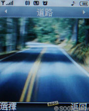 如同上一頁所提到的,LG G262 不僅外型具備了時尚百萬跑車的造形設計,就連內建功能上也不時的曝露出跑車專屬的設計巧思,每按一次操作按鍵,就會響出跑車喇叭的聲音,在內建的桌布圖案上,此次也收錄幾張跑車極速狀態下的圖片。如上圖中那張主題為「道路」的圖案,兩側道路皆已成模糊狀,正好模擬出跑車在極速狀態下所出現時之景象,真的很生動!