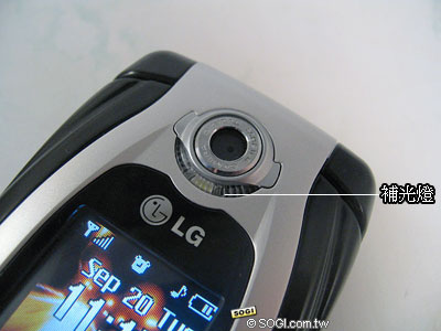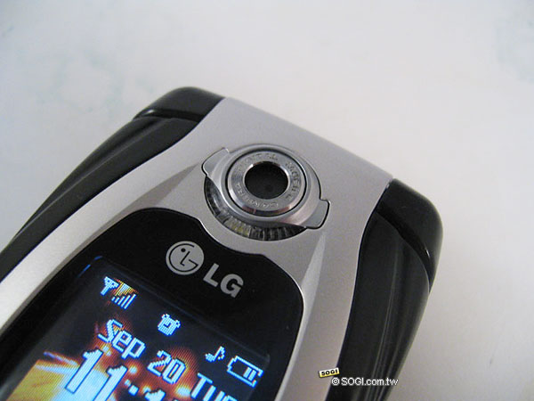 LG G262 內建 130 萬畫素 CMOS 相機鏡頭,在鏡頭的下方有一個超亮的補光燈,使用者可以用外螢幕自拍。