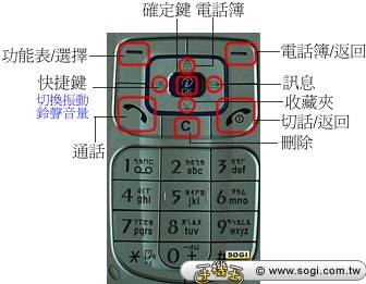 四方鍵的左側是切換振動或鈴聲音量大小的快捷鍵、右側是訊息功能;值得一提的是下方鍵設計為一個”收藏夾”,其功能非常彈性、可以自設功能選項裡的子功能選項當作是捷徑,真是非常貼心呢