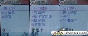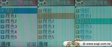 功能表畫面的設計上非常彈性,可以有兩種瀏覽方式,單純只使用上下鍵或是左右鍵,讓畫面豐富多變、我想這就是四方按鍵的優點吧!在設定裡,還可以更改螢幕的背景顏色.共有6種顏色,可以讓這支手機怎麼看都不會膩!