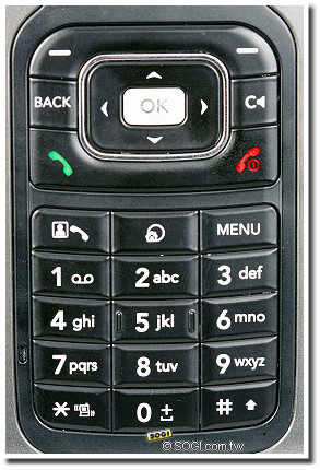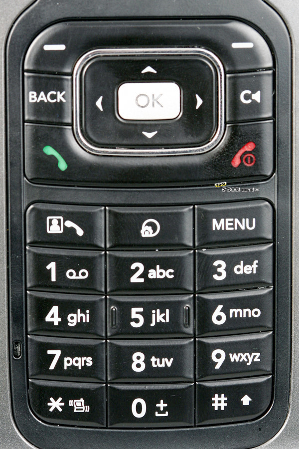 特寫按鍵區域後發現,數字鍵的上方,共有 3 顆按鍵,由左至右分別是撥打視訊電話快捷鍵、上網快速鍵和目錄鍵,刻意設計的功能按鍵,可以加快你在使用時的腳步,省去選單必須一層層下拉和搜尋時所帶來的麻煩。