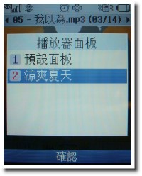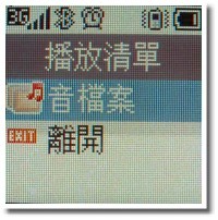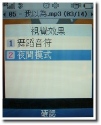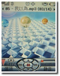LG KU311 在音樂播放的部份,並未將 MP3 功能獨立出來,使用者必須先進入「媒體相簿」中,點選「我的聲音」點選音樂檔案,如果已有建立的音樂播放清單,也可以點選「播放清單」選項,才能夠順利播放音樂。在操作介面的顯示部份,KU311 具備兩種播放器面板,分別是「預設面板」和「涼爽夏天」。另外,為了增加面板的豐富度,KU311 還可支援動態的視覺效果,使用者有「舞蹈音符」及「夜間模式」兩個選擇。