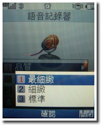 在聲音的應用方面,KU311 還內建了「語音記錄器」的錄音機制,和攝影的功能一樣,「語音記錄器」同樣可以具備錄製「多媒體大小」的選項,待錄製完成便可以馬上傳送給親朋好友,而時間的部份,另外備有 30 秒和 1 分鐘等選擇。而為了顧及聲音的好壞,使用者能夠自行設定音檔的品質,分為最細緻、細緻和標準三種,不過,需要提醒的是,品質好的話,相對地檔案大小也會因此而提高。